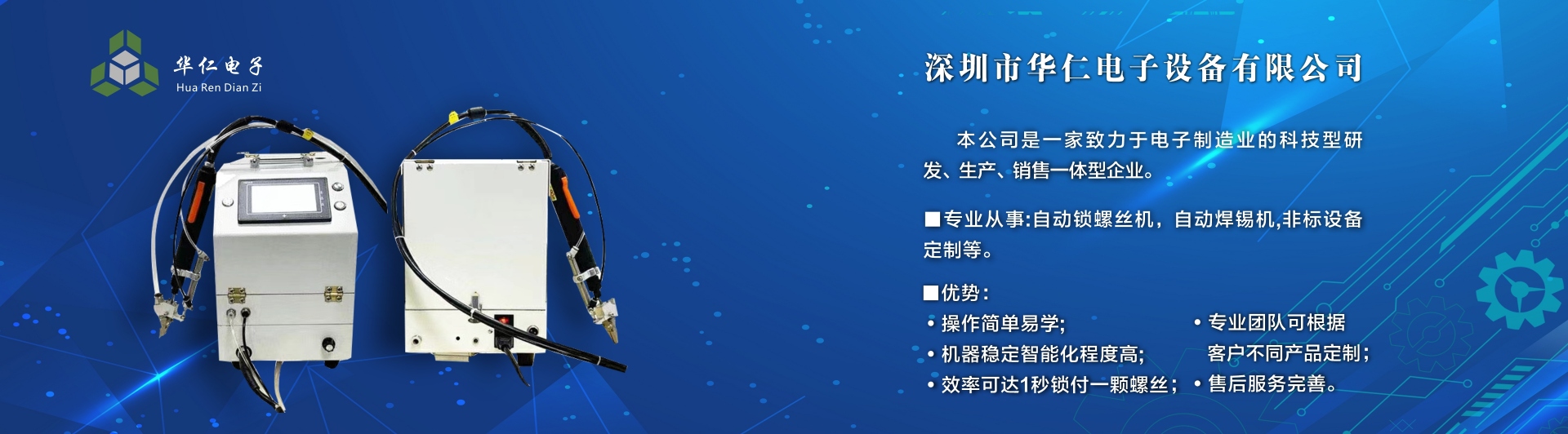 深圳市華仁電子設(shè)備有限公司是一家致力于電子制造業(yè)周邊設(shè)備的科技型研發(fā)、生產(chǎn)、銷售一體的企業(yè),專業(yè)從事:自動(dòng)鎖螺絲機(jī);自動(dòng)焊錫機(jī);非標(biāo)設(shè)備定制機(jī)等,公司長期以來在行業(yè)中積累了豐富的經(jīng)驗(yàn),擁有專業(yè)的研發(fā)、技術(shù)、銷售支持工程團(tuán)隊(duì)、各高級(jí)技術(shù)人才為客戶提供優(yōu)質(zhì)產(chǎn)品和服務(wù),同時(shí)不斷吸取國內(nèi)外先進(jìn)技術(shù),更準(zhǔn)確及時(shí)地為客戶提供優(yōu)質(zhì),性價(jià)比高的產(chǎn)品、公司以專業(yè)的售前、售中、售后服務(wù)贏得了客戶的信賴和好評(píng),為客戶提供先進(jìn)自動(dòng)化設(shè)備一體式解決方案、